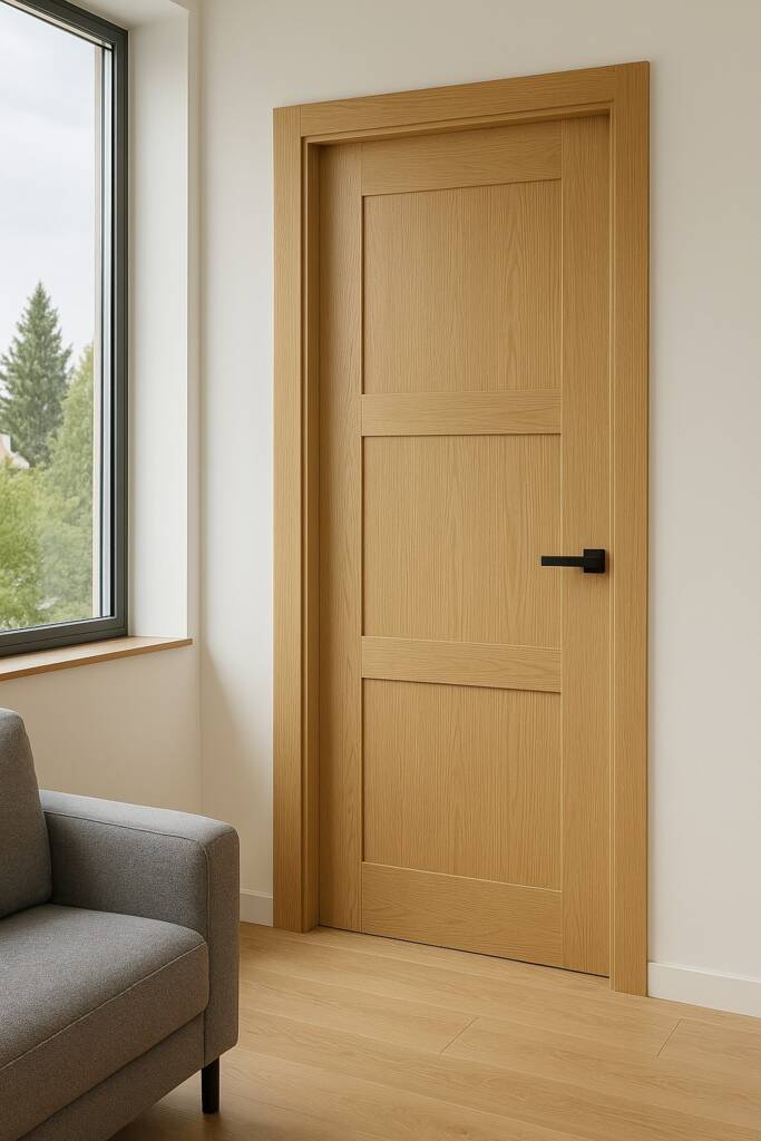 - Instalación de puertas laminadas de alta densidad, resistentes a golpes y humedad.